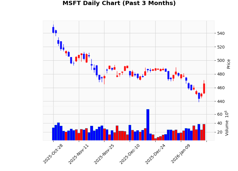 MSFTの株価が現在、$465.95まで下落し、RSI(相対力指数)も46.08と弱気シグナルを示しています。この弱気シグナルの主な理由は、市場全体の不確実性や投資家の売り圧力によるものです。RSIが50未満であることは、過去の株価上昇に対する下降圧力が強まっていることを示唆しており、短期的な弱さが続く可能性があります。