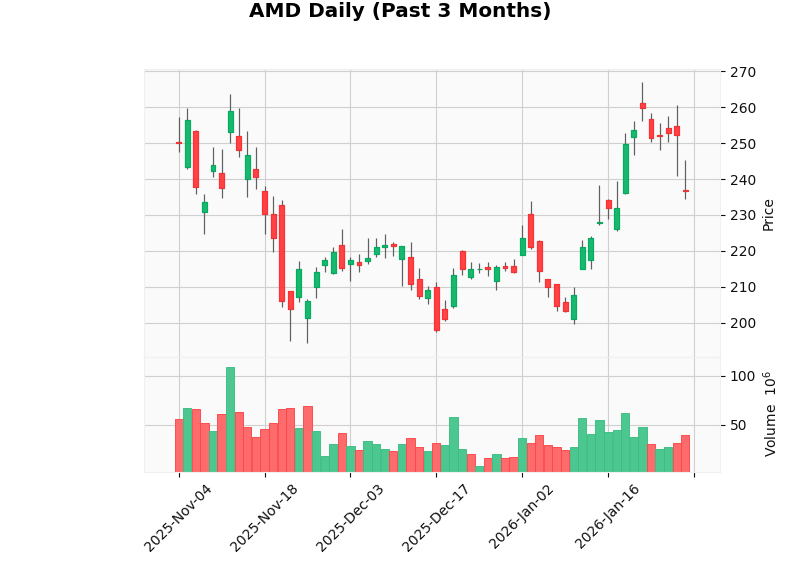 最新ニュースでは、2月3日には四半期報告が予定されており、EPSは1.32ドルと予想されています。MI450の延期により、AMDの株価がかなり低下したことが分かってきました。