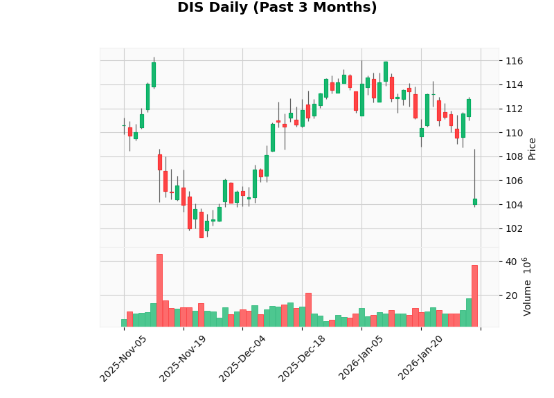 速報: ウォルト・ディズニー・カンパニーの株価は、現在$104.45で、過去24時間の変動率は-7.40%となりました。RSI(相対力指数)は34.94に落ち着いており、買いシグナルを示唆しています。